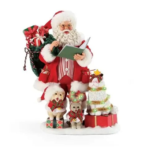 Color changing lights adorn this decorated cat as he joins this Clothtique Santa and the other holiday cats to sing Christmas carols.